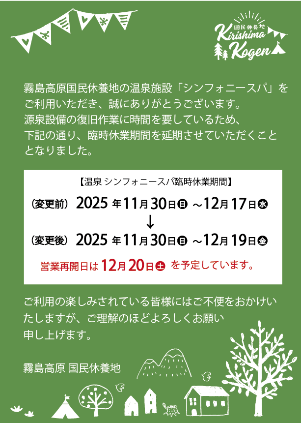 霧島高原国民休養地の温泉施設「シンフォニースパ」をご利用いただき、誠にありがとうございます。