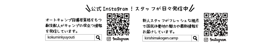 いつも霧島高原国民休養地をご利用いただきありがとうございます。霧島高原 国民休養地は、年末年始も通常通り営業いたします。 年末年始もキャンプ場・コテージともに、ご利用が可能です。 なお電源サイト、コテージはご予約が必要となります。 ご利用をご検討中のお客様は、...