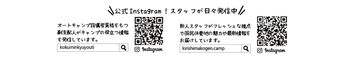 いつも霧島高原国民休養地をご利用いただきありがとうございます。霧島高原 国民休養地は、全施設通常通り営業いたします。 年末年始もキャンプ場・コテージともに、ご利用が可能です。 なお電源サイト、コテージはご予約が必要となります。 ご利用をご検討中のお客様は、お...