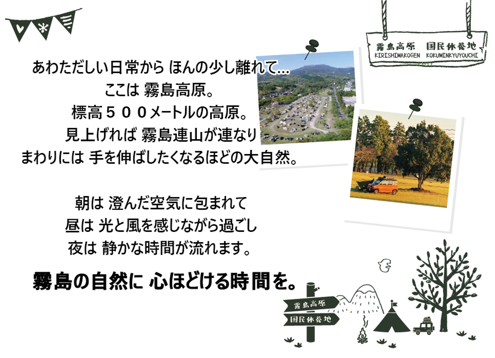 まだ冬の空気が残る2月の霧島高原。 春を越えて新緑の季節に楽しめる キャンプ(電源サイト)・コテージの5月ご予約受付を開始いたしました。ご予約はお電話(0995-78-2004)にて受付中! コテージは公式ホームページ内予約フォームからもご予約いただけます。ぜ...