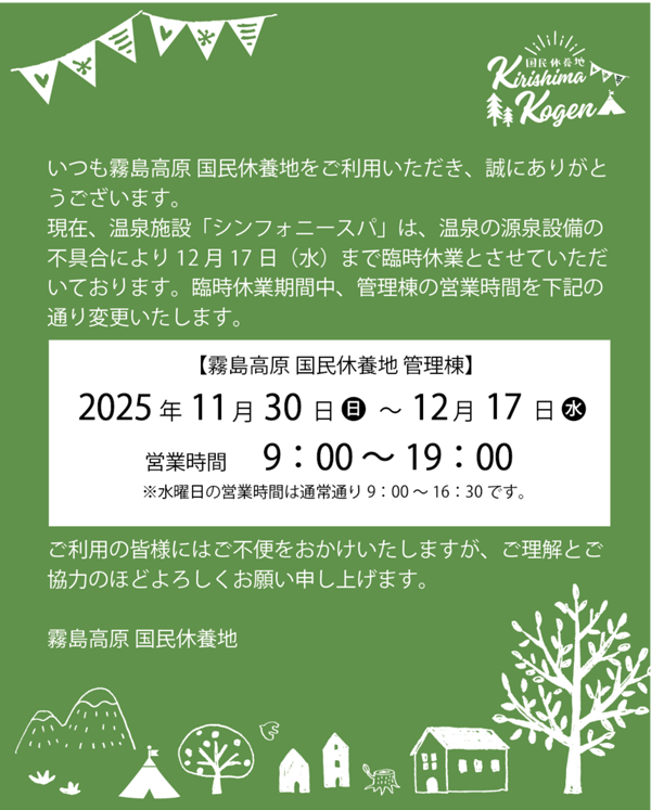 この期間中、管理棟の営業時間を9:00~19:00に変更とさせていただきます。