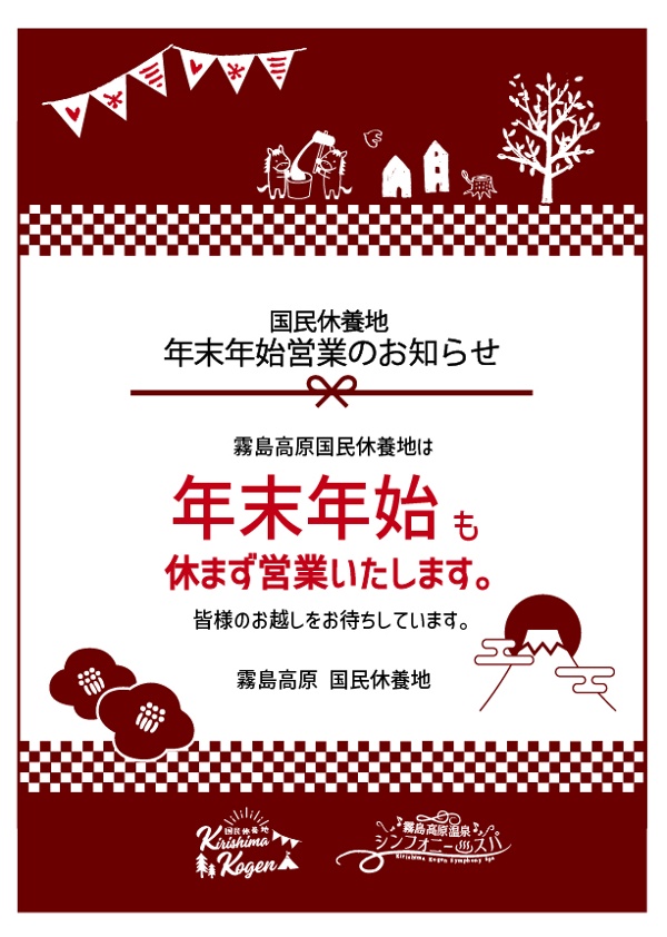 当施設は、全施設年末年始も、全施設通常通り営業いたします。