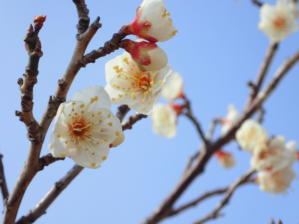 これは私の個人的な意見ですが、桜は華やかなイメージがあるのに対して、梅はどうも地味な花というイメージがあります。何故なんでしょうか?「花見」は桜の下で行うものですが、梅で花見って余り聞きませんよね?「桜」の歌はいっぱいあるのに、「梅」の歌ってありますかね?同じ季節感を感じさせる花なのに、差別を感じませんか?・・・と思う今日この頃です。でも梅干しは大好き!!(笑)