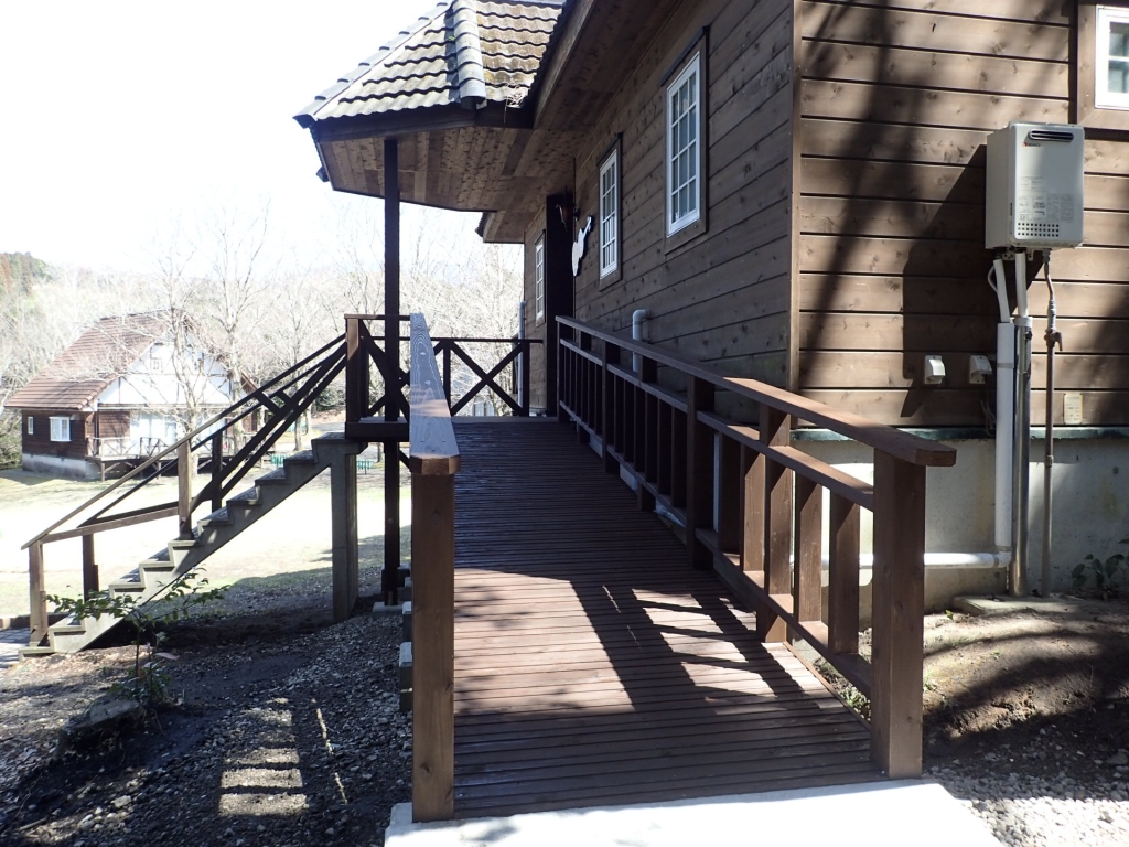 2月中旬から工事中だった、コテージ「バッハ2号」のスロープが3月15日完成しました。悪天候などの理由により工事が予定より遅れてしまいました。