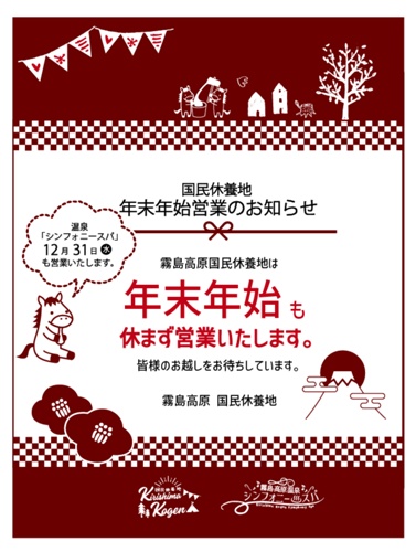 【霧島高原国民休養地】年末年始営業のお知らせ